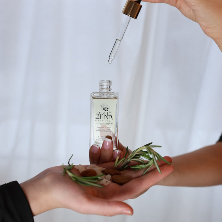 At the heart of ZENA lies our signature creation: the Linden-Inspired Hair Elixir. Carefully crafted with seven powerful oils and vitamins, this formula addresses every aspect of hair health, from soothing the scalp to strengthening the roots.